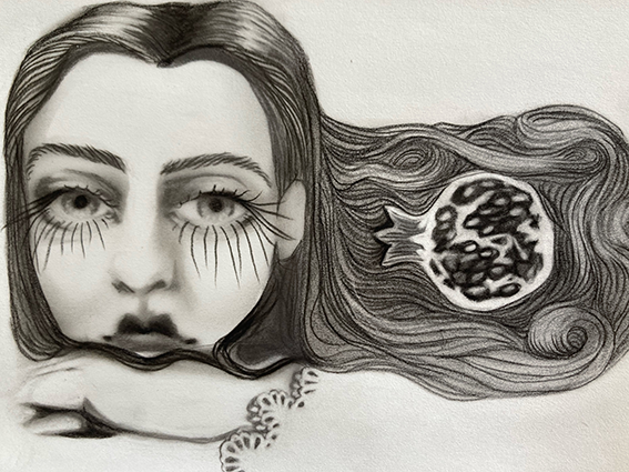 Pomegranate girl, graphite on paper. 2025